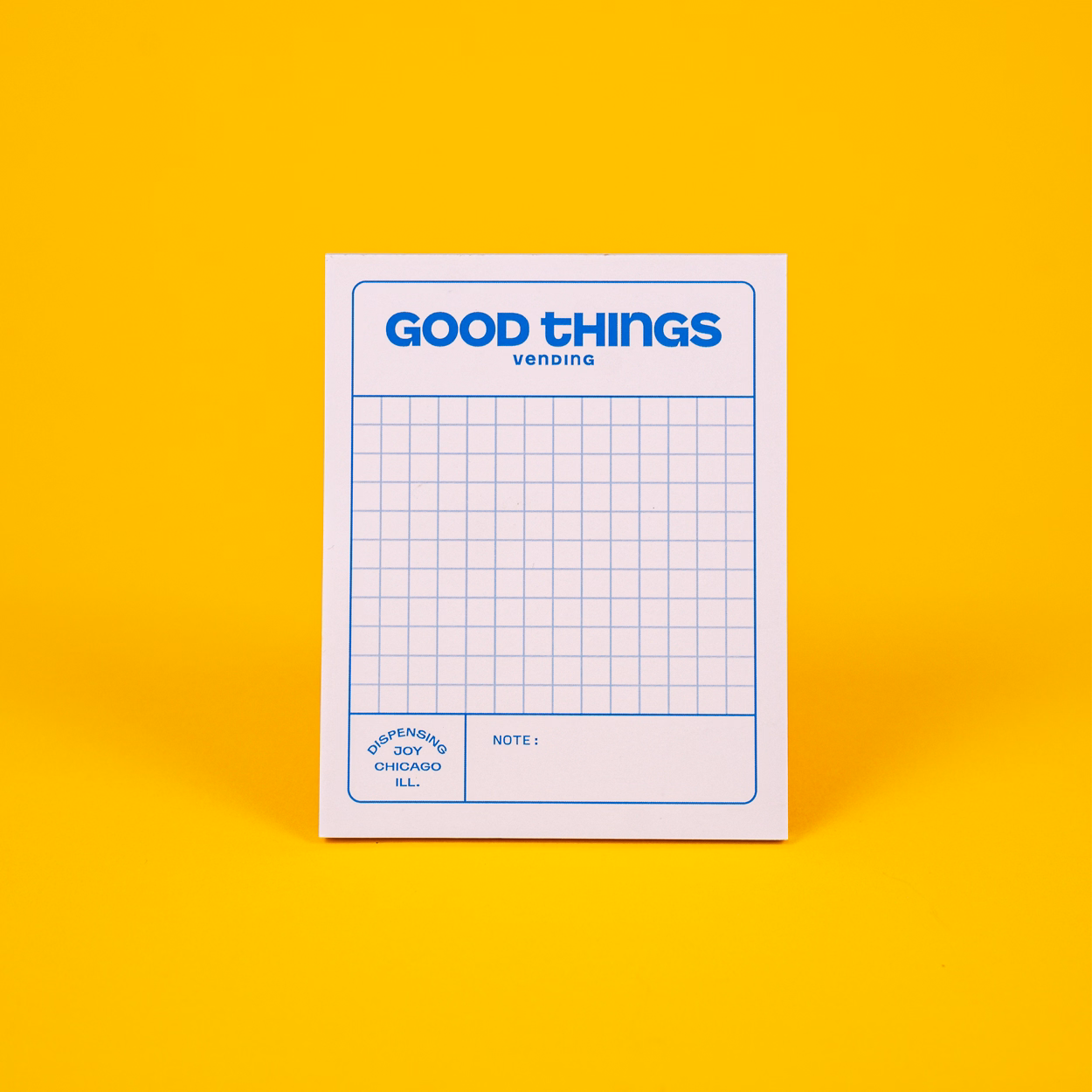 The Good Things Vending Notepad is essential to your everyday life. Scribble, scrabble, doodle away!
